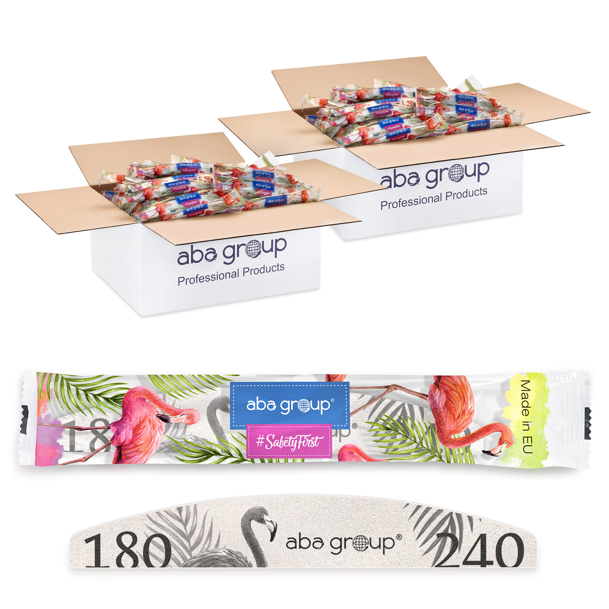 Aba Group BEZPIECZNY PAKIET Pilnik do paznokci PÓŁKSIĘŻYC 180/240 STANDARD – FLAMING, 1000 sztuk